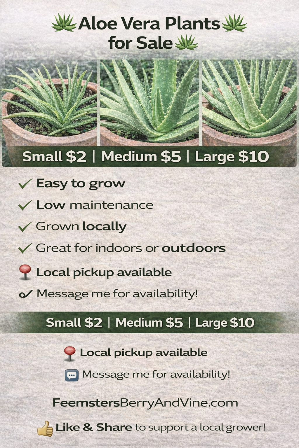 Healthy, locally grown Aloe Vera plants available in multiple sizes.